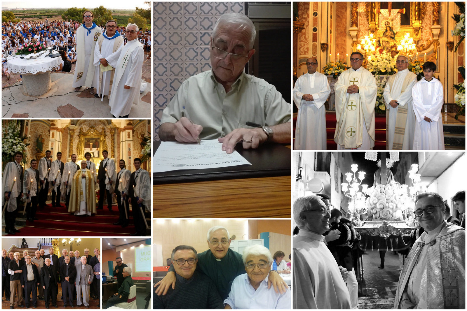 BODAS DE ORO SACERDOTALES. El domingo 28 de octubre celebramos las Bodas de Oro sacerdotales de D. Vicente Gozálvez, Cincuenta años de fecundo ministerio sacerdotal, gran parte de los mismos vividos en la parroquia de Santa Marta de Puçol, a la que llegó como párroco en septiembre de 1986. Desde la otra parroquia de Puçol, la de Santos Juanes, nos unimos a él con la más sentida felicitación, sincero agradecimiento, y los mejores deseos.
