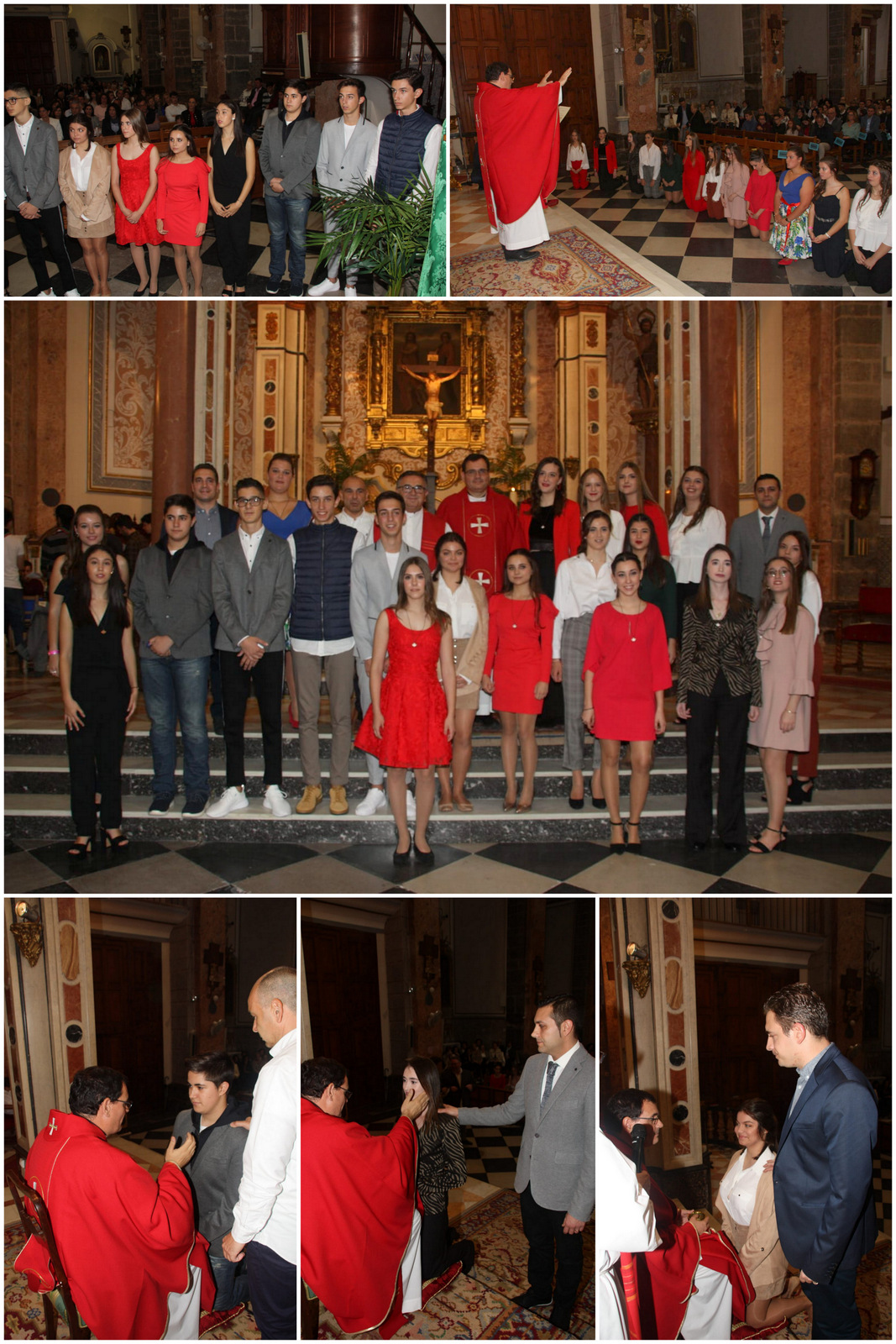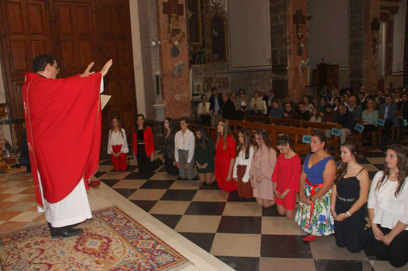 La de ayer sábado fue una tarde lluviosa. No solamente caía agua, sino que del cielo descendía el Espíritu Santo para fortalecer la vida cristiana de los jóvenes que recibían el sacramento de la Confirmación. Acompañados por sus catequistas, esta vez también en calidad de padrinos, Rafa, Mariano y Vicente fueron presentando a los que iban siendo confirmados por D. Fernando, rector del seminario mayor de Valencia. Que estos chicos y chicas, animados por el Espíritu Santo, puedan seguir escribiendo la historia de sus vidas al dictado del amor de Dios. ¡Felicidades! (Fotos de Paco Durá)