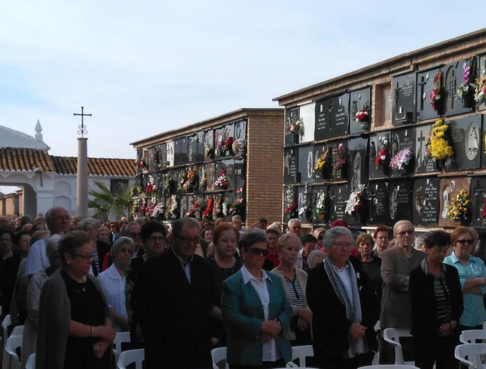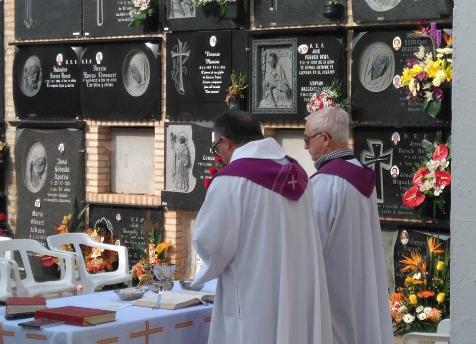 En el día litúrgico de Todos los Difuntos, alrededor de 350 personas se han unido a la celebración de la Eucaristía que hemos celebrado conjuntamente las dos parroquias de Puçol en el Cementerio Parroquial. Agradecemos la colaboración del Ayuntamiento y del personal del mismo que nos ha facilitado las sillas, y también agradecimiento a cuantos cuidan y atienden nuestro Cementerio Parroquial. Seguimos haciendo camino, sintiendo la presencia e intercesión de quienes ya han llegado al abrazo del amor eterno de Dios.