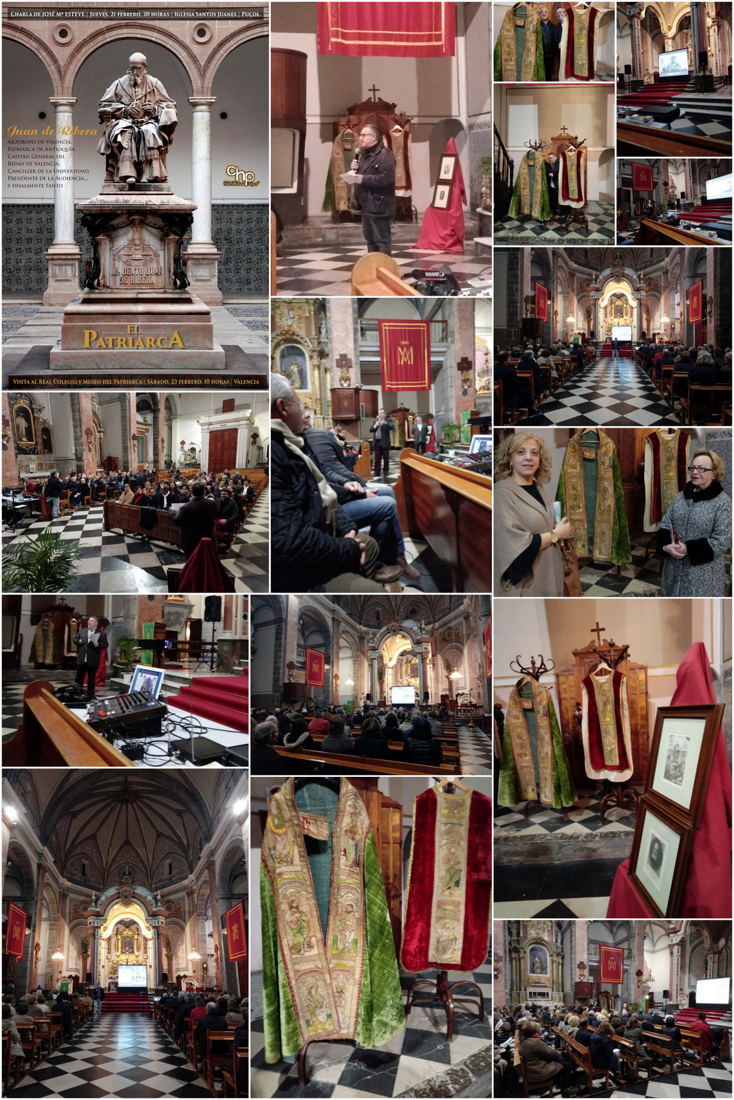 La ponencia del Club de Historia de Puçol sobre san Juan de Ribera (El Patriarca) ha tenido en esta ocasión como sede la iglesia de Santos Juanes por la estrecha relación de la misma con el que fuera arzobispo de Valencia. Alrededor de 100 personas han seguido con interés la disertación de José María Esteve, acompañada de algunos documentos visuales.El párroco de Santos Juanes, Ismael Ortiz, ha glosado la figura de san Juan de Ribera en relación con el culto eucarístico. Mañana sábado se completará esta ponencia con la visita guiada al Real Colegio Corpus Christi de Valencia