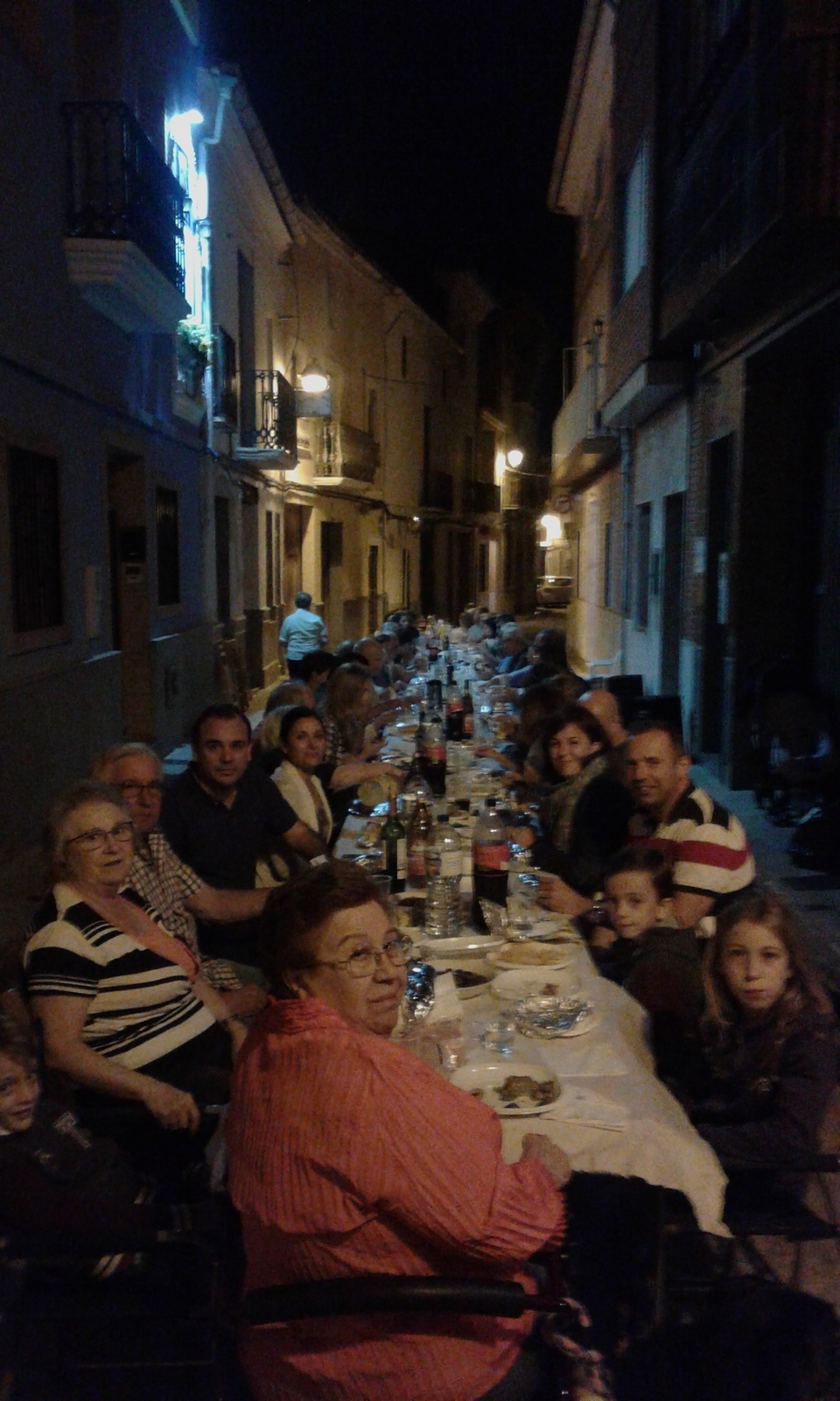 Si hace unos días celebrábamos la fiesta de la calle san Miguel con gran implicación del vecindario, en la noche de ayer los vecinos de la antigua calle Zaragoza – hoy calle dels Horts- se reunían para compartir una cena en la calle. Una cena en la que cada familia, además de traer algo para compartir, aportaba lo más importante: el sentido de vecindario y la buena armonía. Se respiraba muy buen ambiente y se estaba muy bien. Hoy seguiremos celebrando la fiesta de la Virgen del Pilar en la eucaristía de las 12 en la que la Guardia Civil de Puçol honrará a su Patrona, así como los vecinos de la calle mencionada y la comunidad parroquial. Enhorabuena!