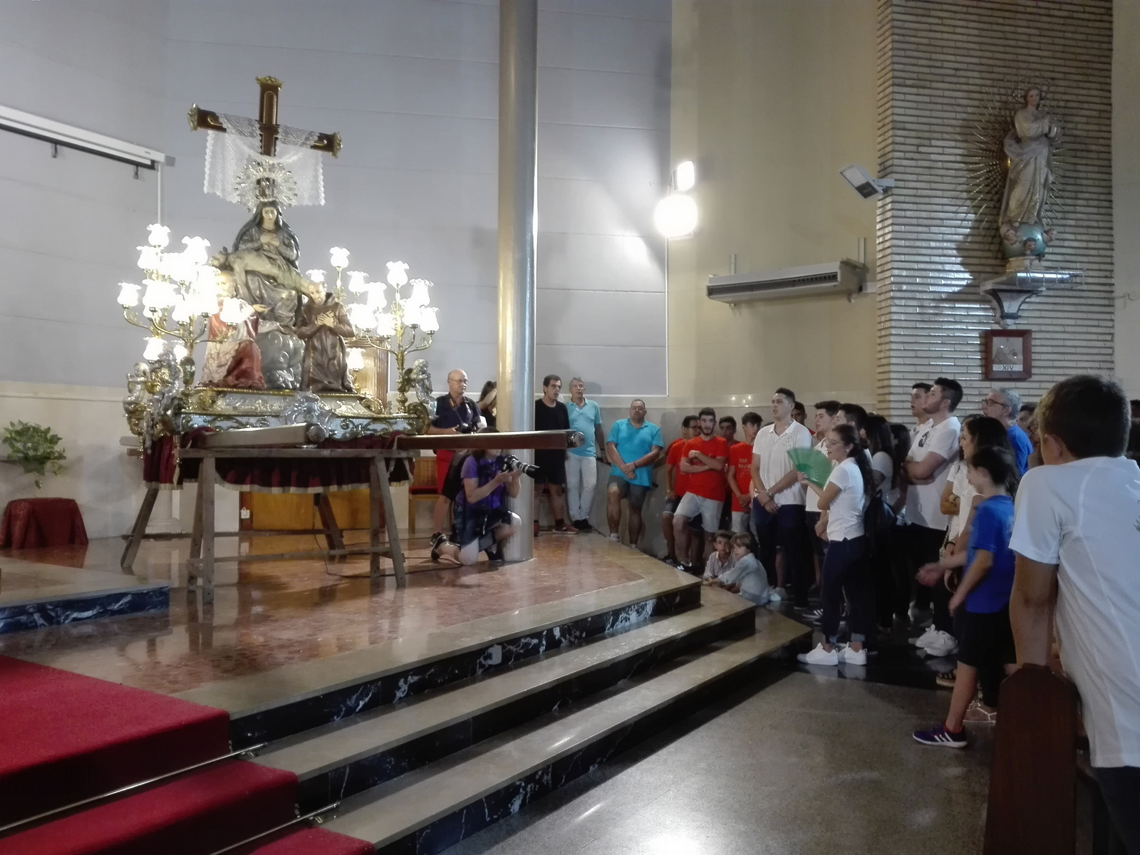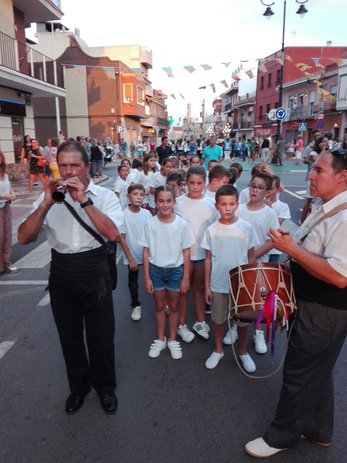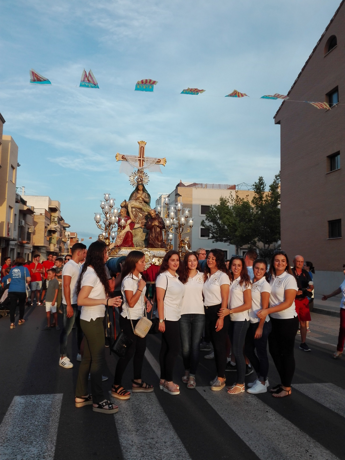 TRASLADO.Son dos días de traslado. Miércoles, desde la parroquia de Santos Juanes a la de Santa Marta, y jueves, tras la Eucaristía, desde la parroquia de Santa Marta hasta la de Santos Juanes. El anda de la imagen de la Patrona es llevada por diferentes personas en una alternancia vinculante de esfuerzo. Un día les correspondía ser portadores a los festeros de este año y otro a los del 2019 con la ayuda de sus padres y otras personas. Presentes también los festeros infantiles con sus padres. Tradiciones que cohesionan grupos y crean buen ambiente de pueblo. Todos alrededor de la Mare de Déu al Peu de la Creu atravesando las calles del pueblo.