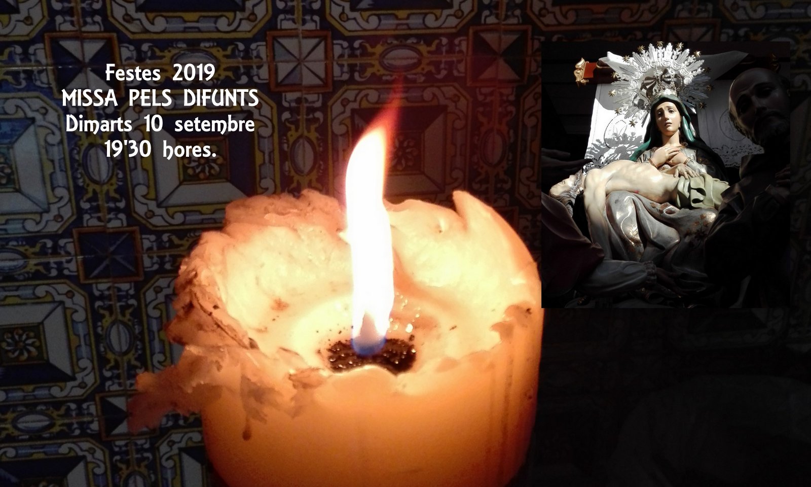 En Puçol, como en otros muchos pueblos, las fiestas incluyen el recuerdo agradecido a los antepasados. Hoy martes a las 19'30 horas, como último acto del programa de fiestas, celebraremos la Eucaristía en memoria de las generaciones anteriores que vivieron y nos transmitieron la devoción a la Mare de Déu al Peu de la Creu. ¡Os esperamos!