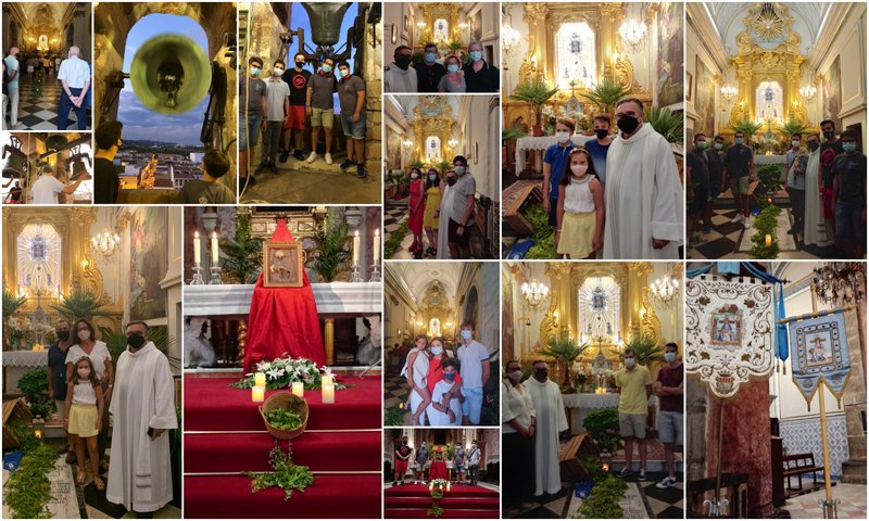 ENTRADA DE LA MURTA. Iglesia abierta durante unas horas para la visita y oración. Ante la Mare de Déu al Peu de la Creu fuimos desgranando el rosario como latido del corazón del creyentes. Fueron muchas las personas que pasaron ayer domingo ante la Virgen. Los jóvenes campaneros convocaban y acompañaban este acto que conmemora año tras año la entrega de la imagen a la iglesia. Este año realizado de manera diferente, sin la parte externa, por motivos sobradamente conocidos.
