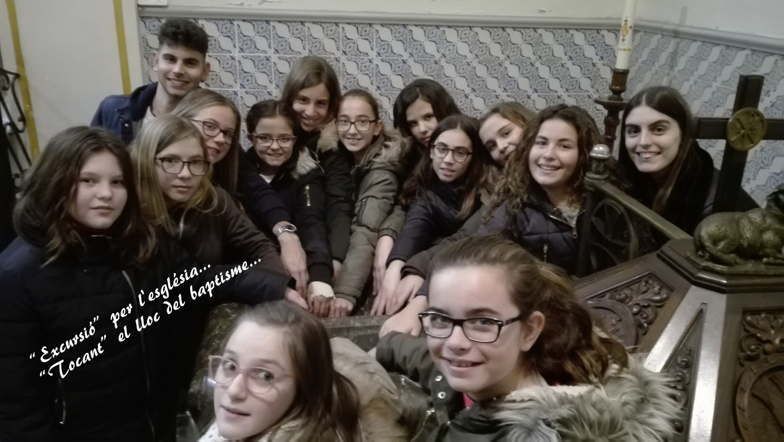 Simpática y refrescante imagen de uno de los grupos de Junior en el Baptisterio que, acompañados por el párroco y sus educadores hicieron una "excursión" por el templo de Santos Juanes para conocer los diferentes lugares...