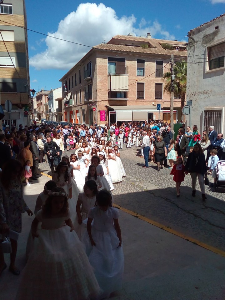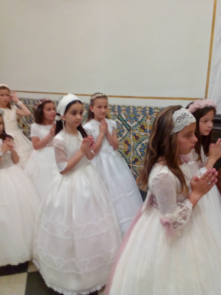 Antes de comenzar la celebración, los niños y niñas de la Primera Comunión han saludado a la Mare de Deú el peu de la Creu, patrona de Puçol. Emotivo momento tras el que han sido acogidos por la comunidad parroquial para vivir este día tan significativo para ellos, para sus familias, y para la parroquia de Santos Juanes. ¡Enhorabuena!