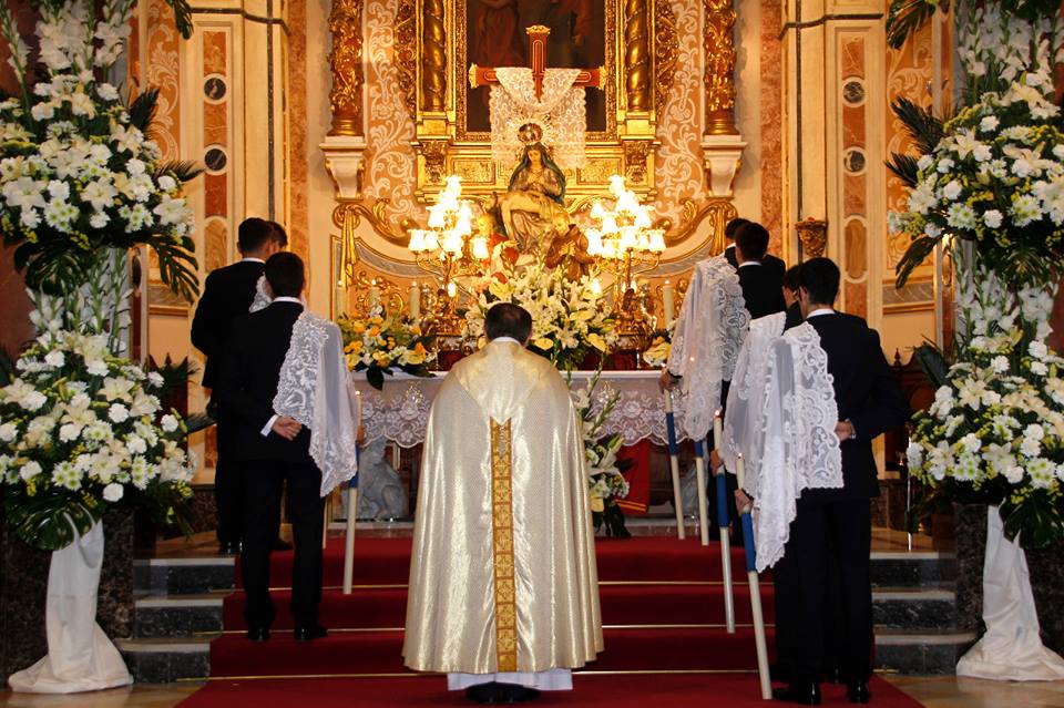 QUINT DIA DEL SEPTENARI. Amb profund dolor contemplava María la crucifixió i agonia del seu fill. Profund dolor el de la Mare, que poden entendre millor que ningú aquells pares que han vist morir a un fill. María està al peu de la Cruz, i Jesús des de la Creu ens la dóna com a mare perquè la rebem en la nostra casa, en la nostra vida...