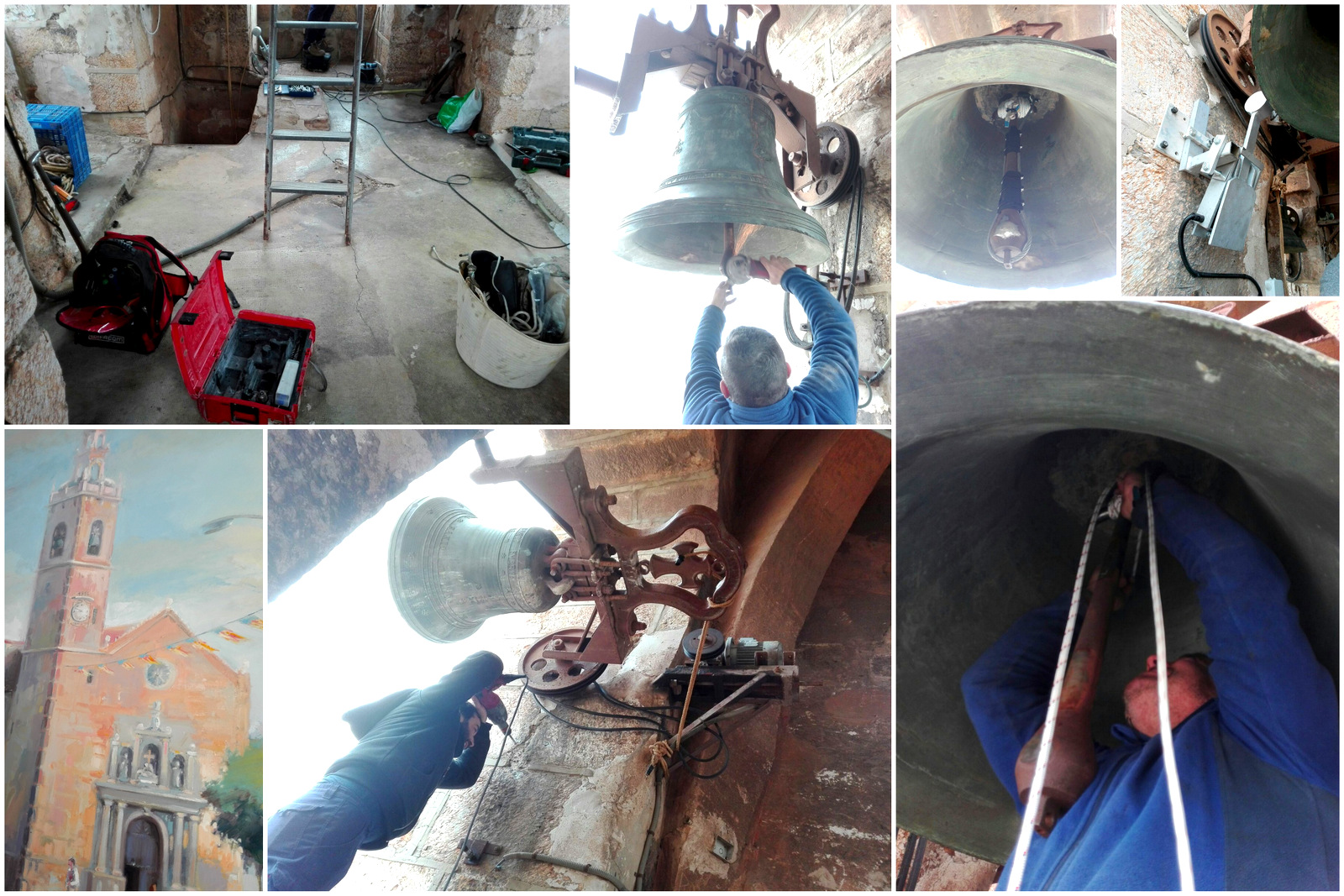 CAMPANES. Esta vez ha tocado "tocar" a las campanas para revisar su funcionamiento y arreglar algún desperfecto. Los técnicos campaneros han actuado y, según informa nuestro campanero local Pau, han ajustado engranajes, revisado badajos, sustituido un viejo martillo defectuoso por uno de nueva generación, engrasado los mecanismos, etc. Una puesta a punto para que nuestras campanas sigan señalando las horas y llamando a las diferentes celebraciones de la vida parroquial. Trabajos que no se ven pero que, una vez hechos, se notan...