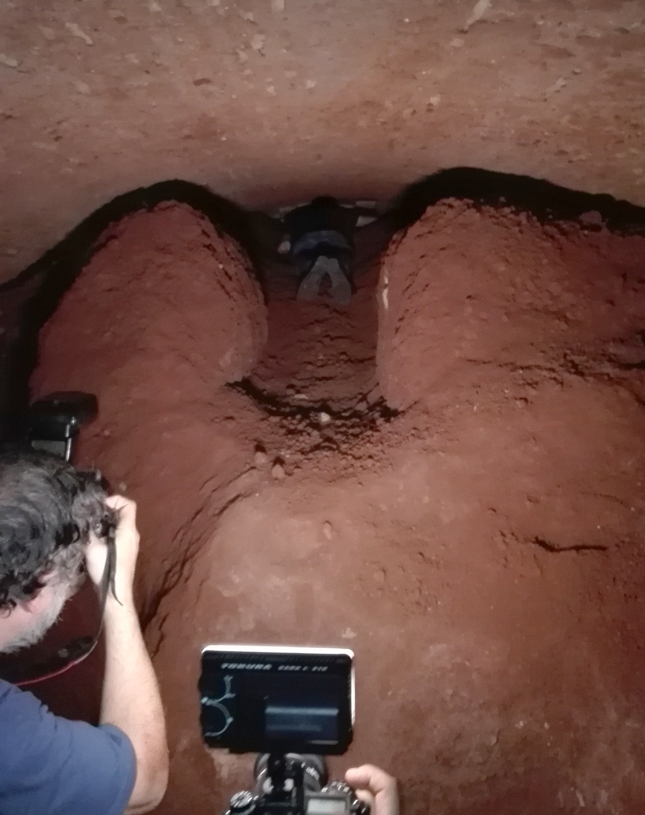 SERPENTEANDO. Sí, porque serpenteando es la única manera de acceder a la Cripta de la Iglesia de Santos Juanes. Después de tres años como párroco he tenido ocasión de adentrarme junto con otras personas en el subsuelo del templo parroquial. El acceso es difícil, dado que la Cripta está casi por completo llena de tierra procedente de los túneles que se hicieron en el subsuelo durante el tiempo de guerra. Se trataba de ver un lugar en el que en su día habría enterramientos y que probablemente disponía de un pequeño altar como evidencia la parte del mosaico que asoma entre los montones de tierra. Un primer "adentramiento" y "avistamiento" para tomar notas y sembrar interés con el fin de poder recuperar y adecuar en su momento, asesorados por expertos, este espacio de nuestra Iglesia.