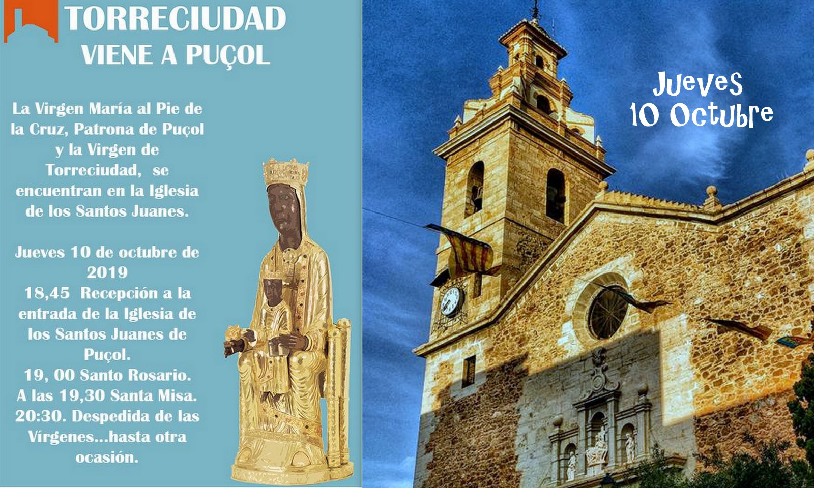JUEVES 10 DE OCTUBRE. La imagen peregrina de la Virgen de Torreciudad será recibida en Santos Juanes el jueves 10 de octubre, correspondiendo a las dos visitas que nuestra parroquia hizo al Santuario de Torreciudad en los años 1989 y 2001. Por ello, tal día, a las 18’45 horas recibiremos la imagen, a lo que seguirá el rezo del Rosario y la celebración de la Eucaristía en la que daremos gracias a Dios por las diferentes advocaciones con las que la Virgen María acompaña nuestro camino cristiano.