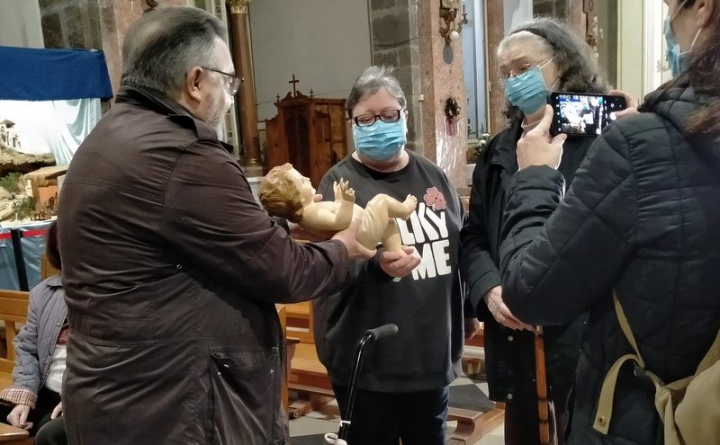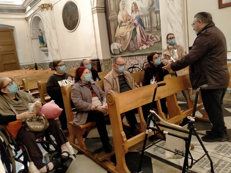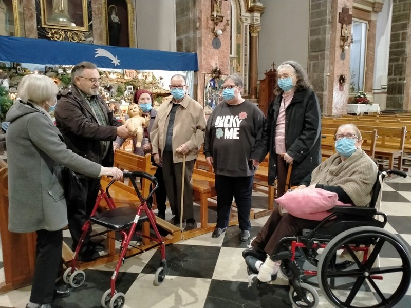 Siguiendo una bonita costumbre, EL lunes 26 de diciembre, un grupito de personas de la residencia de mayores y personas dependientes acompañados de los profesionales visitaron el Belén de la iglesia de los Santos Juanes. La visita también incluyó una oración ante la Mare de Déu al Peu de la Creu, patrona de Puçol. En nombre de la Cofradía de la Virgen se les entregó un pequeño nacimiento como recuerdo de la visita.